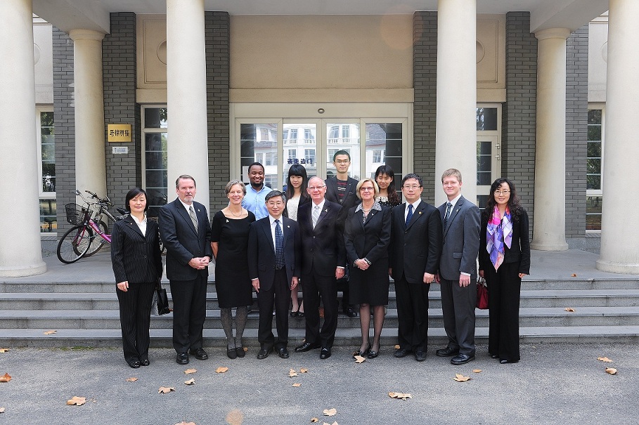 2013年11月6日上午,美國Appalachian State University校長Chancellor Peacock教授訪問了tyc1286太陽集團,陪同來訪的有該校學生事務副校長Cindy Wallace,學校拓展事務副校長Susan Pettyjohn,商學院院長Randy Edwards,學生大使協會主席Jacob Brooks。外事處朱疇文處長、劉莉副處長、李紅、林潔穎等參加接待。