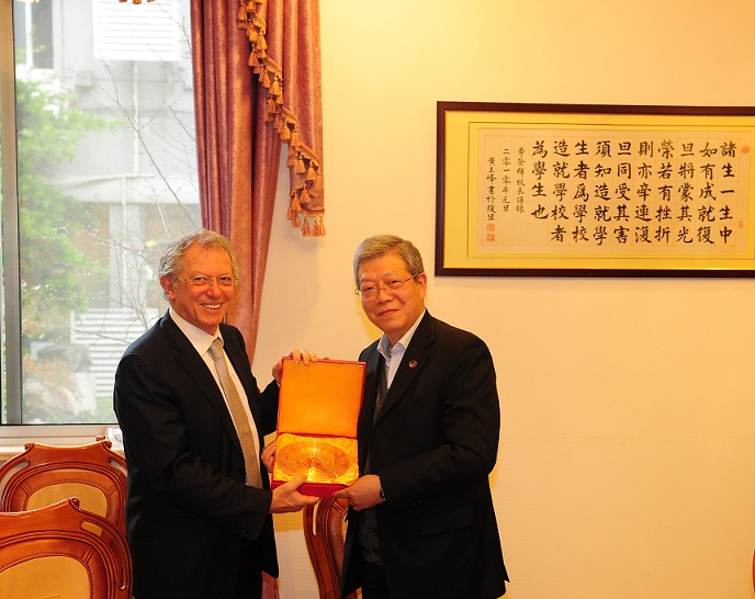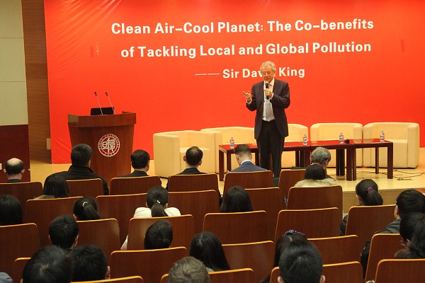 英國外交大臣氣候變化特使大衛?金爵士Sir David King于2月26日周三下午來上海訪問。因tyc1286太陽集團與英國高校以及在丁鐸爾研究中心方面的緊密合作,大衛爵士特意到訪復旦,與楊玉良校長會談,討論加強中英科研合作事宜。會后,大衛爵士來到光華樓為復旦學生帶來了一場名為“清新的空氣-解決本地和全球污染問題是我們的共同利益”的講座。我校丁鐸爾中心主任Trevor Davies教授、楊新教授、王琳教授和蔣平博士等在講座后與大衛爵士進行了主題討論,并請爵士回答了學生們提出的問題。