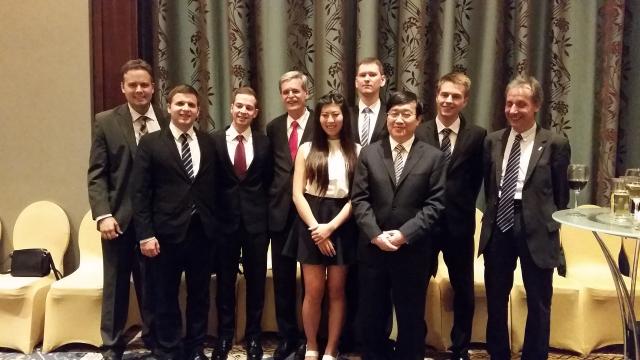下午周亞明校長助理會見了代表團成員,外事處唐文卿副處長、歷史系主任黃洋、德語系主任劉煒、歐洲事務項目主任汪穎參加了會談。之后歷史系與圖賓根大學人文學院還合作主辦了題為“歷史思想 — 何去何從?”的講座,邀請德國著名歷史學家約恩?呂森(J?rn Rüsen)主講。晚上許寧生校長與Engler校長會面,雙方熱烈交流并表示將共同努力推動兩校擴大合作,結成更緊密的戰略伙伴關系。圖賓根校友還為兩校代表表演了小合唱。