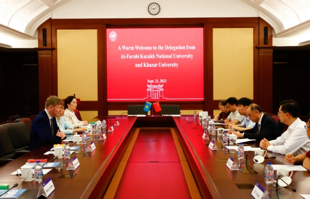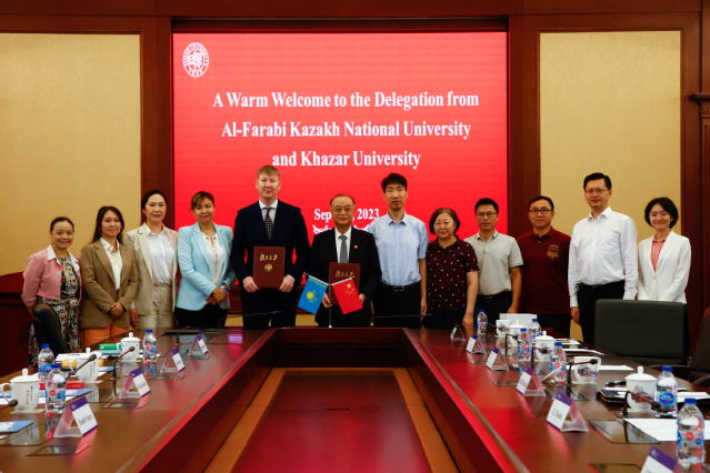 2023年9月21日,哈薩克斯坦國立大學副校長布里巴耶夫·茲霍爾達斯·阿拉迪諾維奇(Buribaev Zholdas Alladinovic)教授、阿塞拜疆卡扎爾大學董事會主席哈姆雷特·伊薩耶夫(Hamlet Isayev)院士率兩校代表團來訪。tyc1286太陽集團副校長張人禾院士會見代表團。