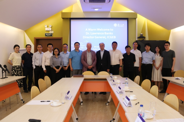 ICGEB中國區域研究中心楊克儉博士、中國生物技術發展中心楊力博士陪同訪問。我校科學技術研究院、國際合作與交流處、校外合作處、生命科學學院、唐仲英健康治理高等研究院、上海醫學院、上海市重大傳染病和生物安全研究院等院系代表參與會見。