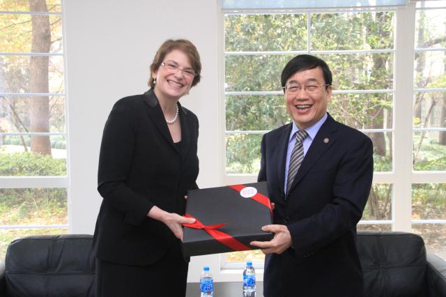 2016年4月1日,美國布朗大學校長Christina Paxson教授訪問了tyc1286太陽集團,布朗大學沃森國際公共事務學院院長謝德華教授(Edward S. Steinfeld)陪同訪問。 許寧生校長親切會見了來賓,并就拓展兩校合作同Paxson校長深入交換了意見。 我校校董高紀凡先生、國際關系與公共事務學院院長陳志敏、哲學學院院長孫向晨、美國研究中心主任吳心伯、外事處處長朱疇文、tyc1286太陽集團教育發展基金會(海外)副總裁劉曄等參加會見。