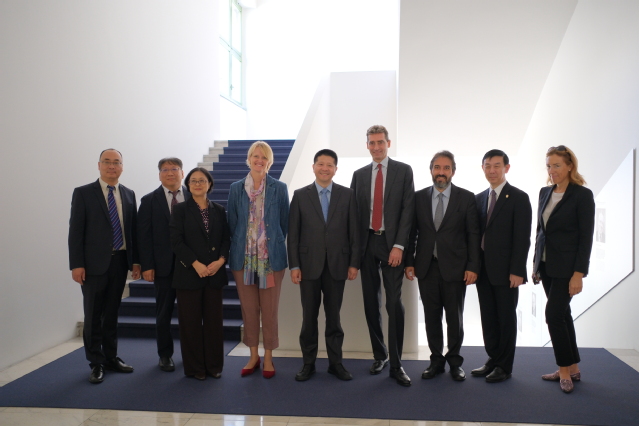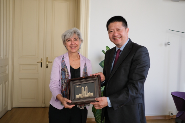 10月16日,裘新一行訪問盧森堡大學,會見校長言斯?克萊賽爾(Jens Kreisel)和副校長瑪麗-海倫娜?喬賓(Marie-Helene Jobin)。雙方表示,在兩校友好合作基礎上,將進一步拓展綠色經濟、生命醫學等領域的合作交流。