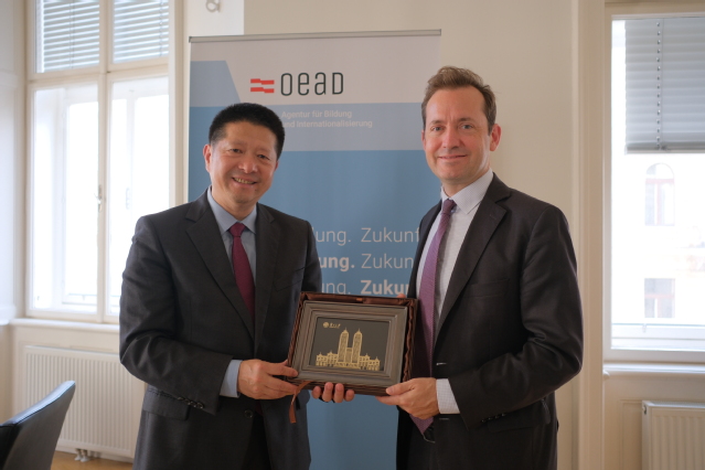 10月13至14日,裘新一行在奧地利訪問維也納大學,會見副校長馬努艾拉?巴卡瑞妮(Manuela Baccarini)。裘新表示,自2019年兩校簽署戰略合作協議以來,雙方共同開展了豐富多彩的線上活動與學術研討會,希望國際旅行恢復之后兩校能進一步推進戰略伙伴關系,增進線下交流與人員互訪。裘新還訪問了奧地利學術交流署(OeAD)總部,會見執行總監雅各布?蔡禮思(Jakob Calice);訪問歐亞太平洋大學聯盟(Eurasia-Pacific Uninet),會見聯盟主席沃夫迪特?勞施(Wolf-Dieter Rausch)等。