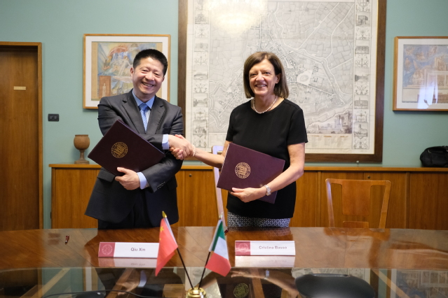 10月9至11日,裘新一行在意大利訪問博科尼大學,會見校長弗朗西斯科?比拉瑞(Francesco Billari)和校董事會主席安德烈亞?西羅尼(Andrea Sironi);訪問威尼斯大學,會見校長李集雅(Tiziana Lippiello),簽署校際合作諒解備忘錄補充協議,達成具體學科合作意向;訪問帕多瓦大學,會見副校長克里斯提娜?巴索(Cristina Basso),簽署校際合作諒解備忘錄。裘新表示,將大力支持復旦與意大利伙伴高校加強優勢學科交流,進一步拓寬合作領域。