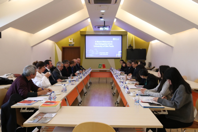 圣保羅大學副校長(本科)Aluísio Augusto Cotrim Segurado、外辦副主任Marly Babinski、人文學院院長Paulo Martins、動物飼養與食品工程學院院長Carlos Eduardo Ambrósio,天文學、地球物理和大氣科學院院長Ricardo Ivan F. da Trindade、地質/地球科學學院院長Caetano Juliani、高等農學院院長Thais Vieira、東語系副教授Shu Changsheng共同來訪。來自tyc1286太陽集團附屬口腔醫院、國際關系與公共事務學院、大氣科學研究院/大氣與海洋科學系、外文學院、發展研究院金磚國家研究中心、國際合作與交流處的代表共同與會。